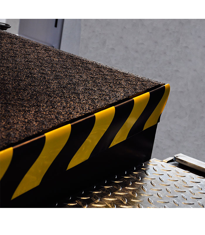 Dank der gelb-schwarzen Warnmarkierung wird der Bereich klar gekennzeichnet und die Sicherheit beim Andocken und Entladen erhöht – Erfüllt die Anforderungen nach Sicherheits- und Gesundheitsschutzkennzeichnung (ASR A1.3)